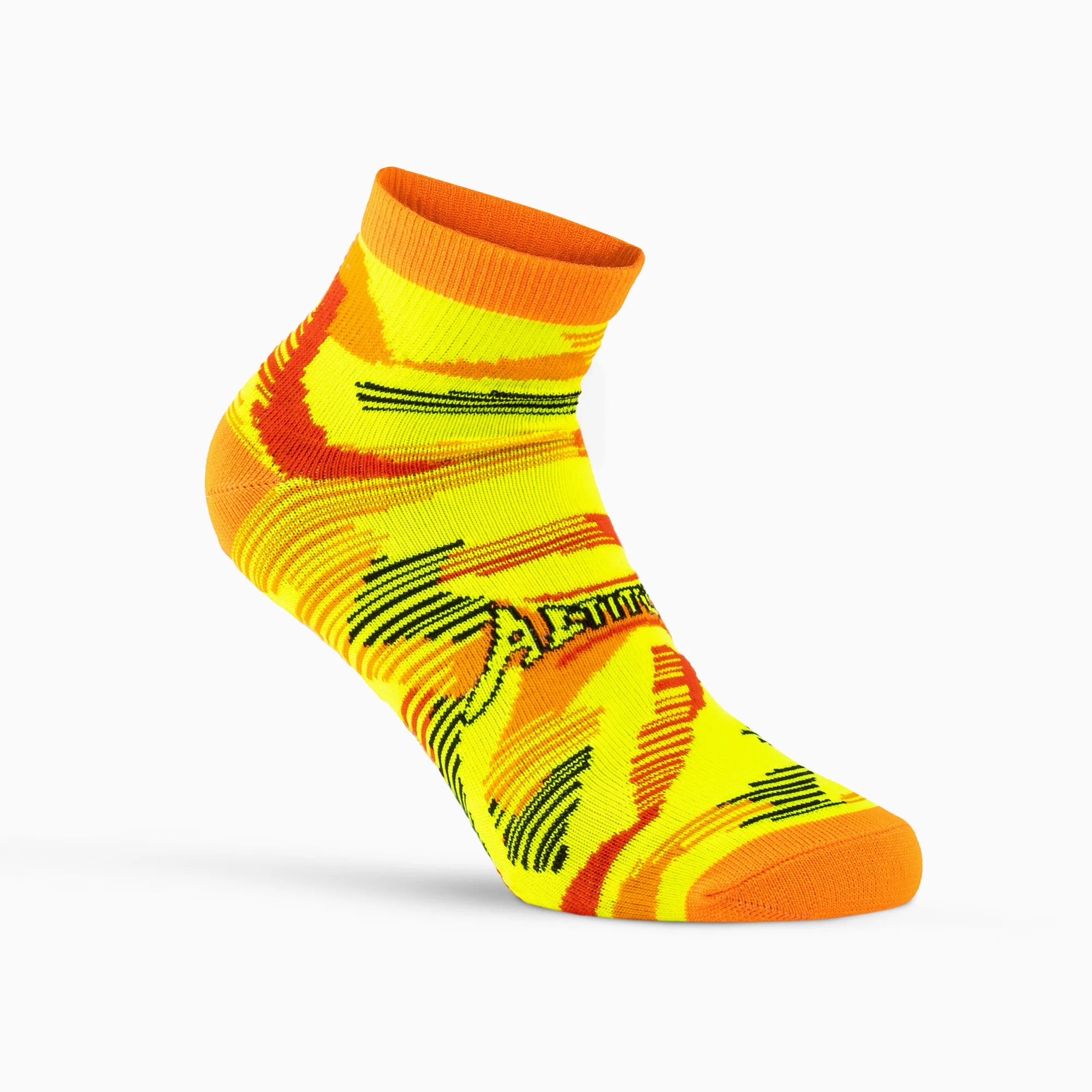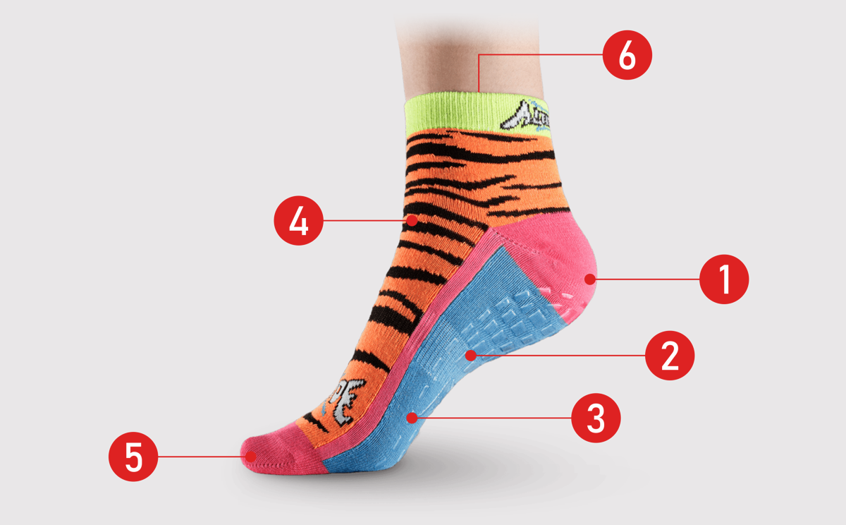 Blaze brings a burst of energy to the trampoline park, with a fiery design that stands out. Engineered for high performance, these socks combine a high-traction sole and a snug, comfortable fit to help jumpers of all ages leap with confidence. A great way to add a bright, energetic pop to any park's inventory. ✨
